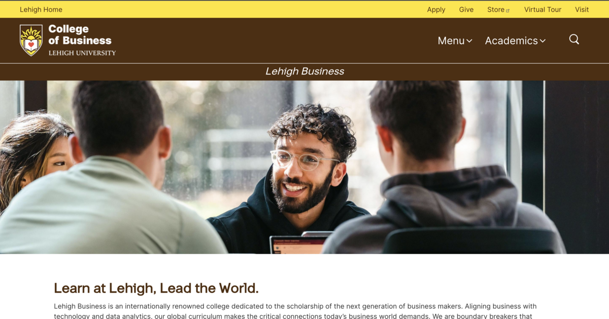 During the morning of Monday, October 20, 2025, WMS rolled out updates to the College of Business website to incorporate the new Lehigh brand which launched on Friday, October 17, 2025. Changes included updates to fonts and colors. Additionally, hero images were replaced (and the new ones look fantastic!).